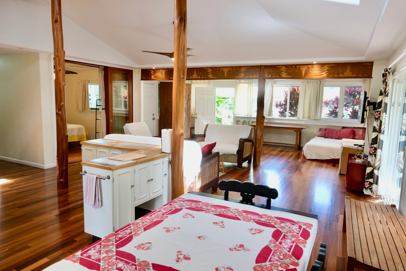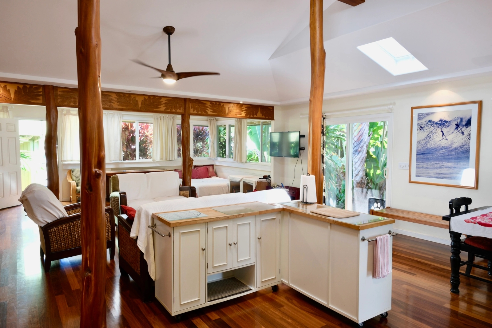 North Shore Home Near V-Land | 3 Bedroom, 2 Bath Aloha seeking a long-term tenant for this well-maintained 3-bedroom, 2-bath home located on a peaceful dead-end street on Maika Place, just a short walk to world-class surf at V-Land and other iconic North Shore breaks. The home is also bikeable to schools, shops, and more. Inside, you'll find an open layout with hardwood floors, skylights throughout, and a classic vintage gas stove. The home offers flexible living options and can easily be set up as a mother-in-law suite. Enjoy outdoor living with a private yard, spacious deck, and outdoor shower, plus plenty of surfboard storage. Washer and dryer included. Parking for one car is available on-site, with additional street parking nearby. The home can be rented furnished or unfurnished. (No Airbnb or short-term rentals.) Details: Available Immediately 3 Bedrooms / 2 Bathrooms Furnished or Unfurnished Options $300 Flat Utility Fee + GET Washer/Dryer Outdoor Shower & Surfboard Storage Hardwood Floors & Skylights Quiet Dead-End Street, Walk to V-Land Detached Home with Two Additional Studios on the Property Tenant pays $300 Flat Utility Fee + GET