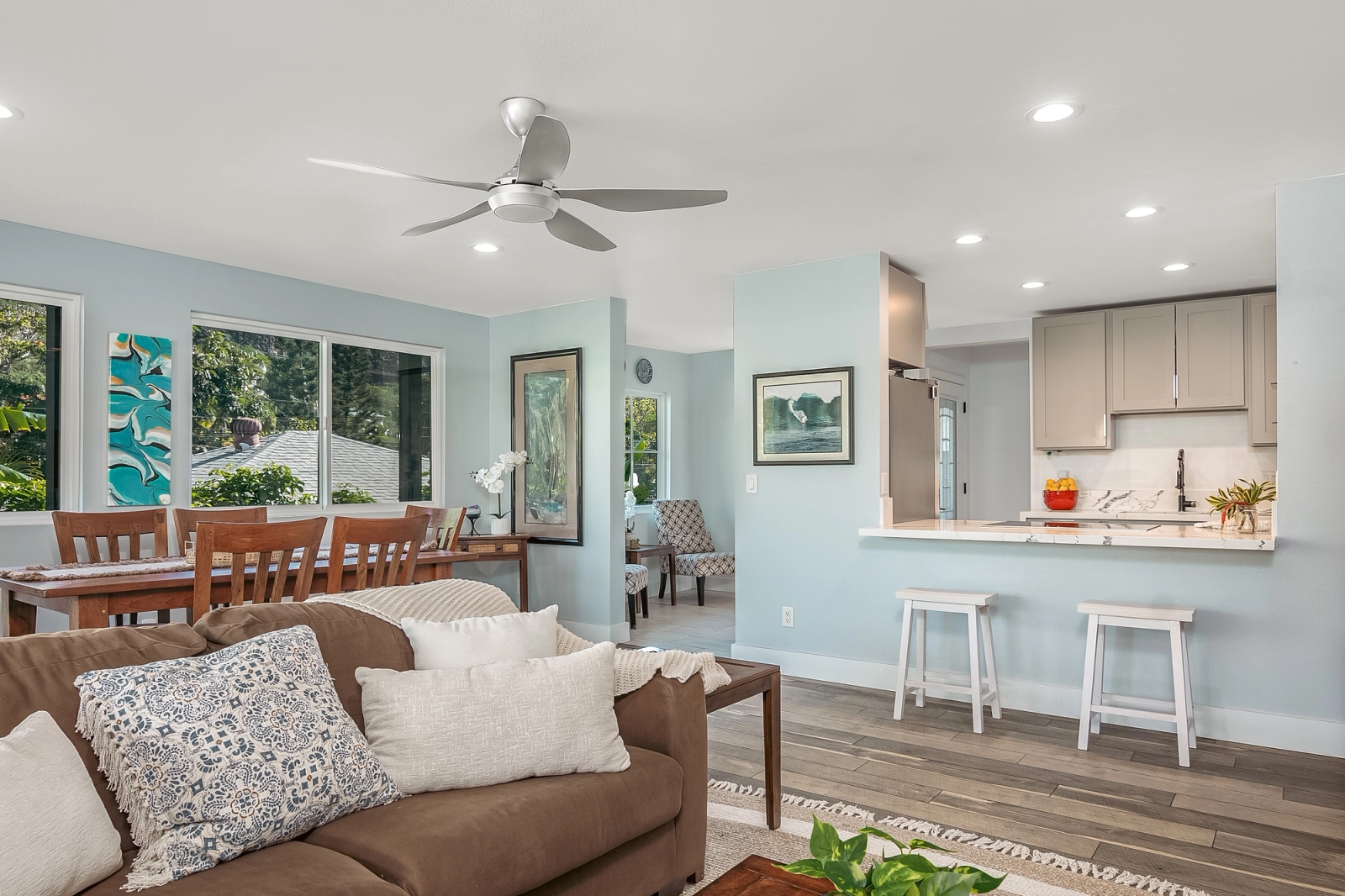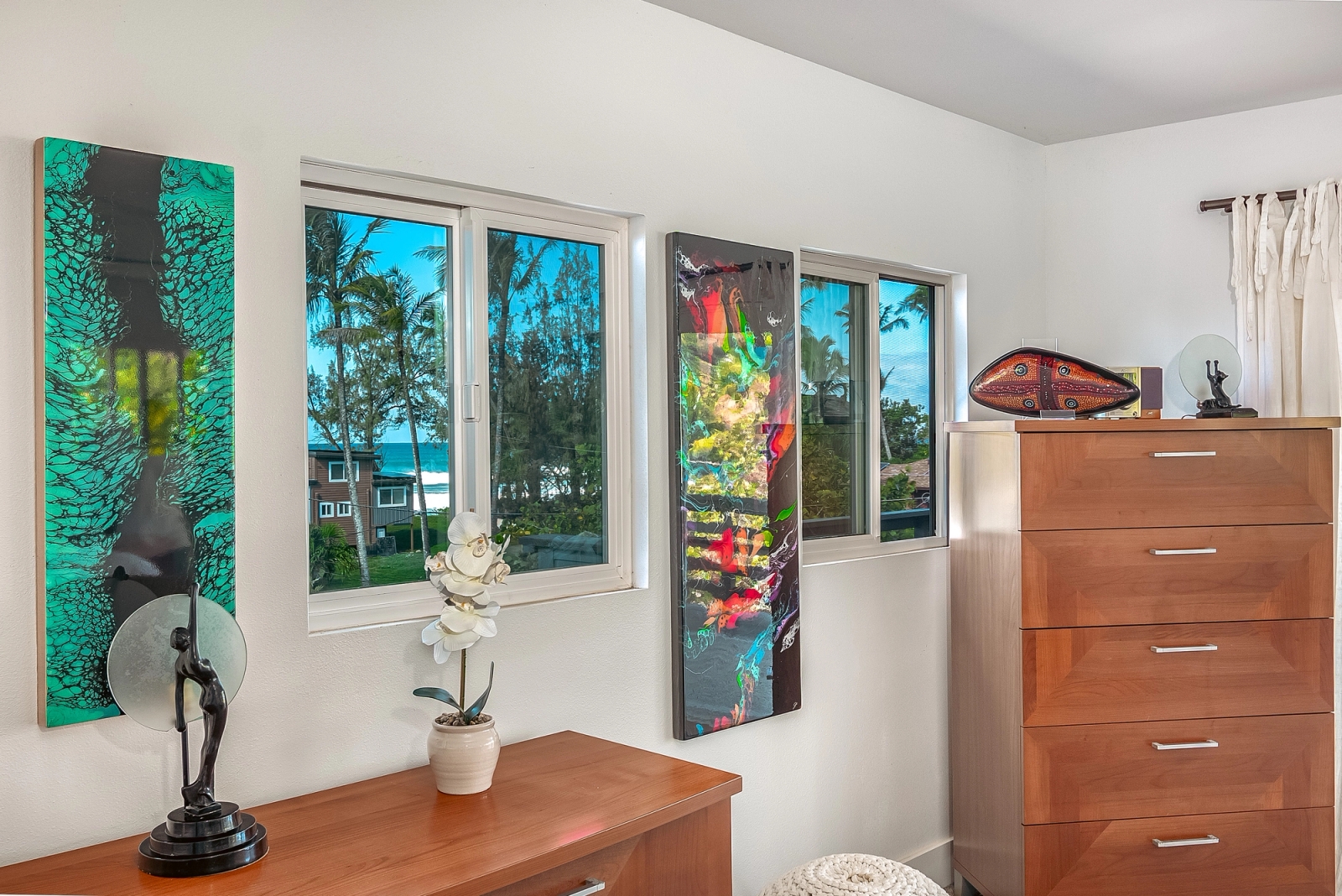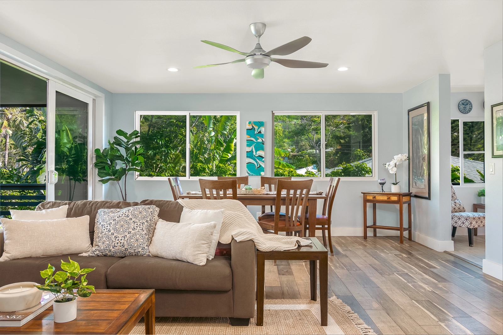 This meticulously renovated 3-bedroom, 3-bath home sits on a peaceful beach access lane off Ke Nui Road, just steps from Rocky Point, with breathtaking ocean and mountain views and setback just a few homes from the beach. The home offers island living at its finest, with a primary suite and a large covered deck. Covered parking for up to three vehicles and an unbeatable location off the bike path. Enjoy easy access to world-class surf, Sunset Elementary, the historic Hale iwa Town, and Turtle Bay Resort all a quick drive or bike ride away.