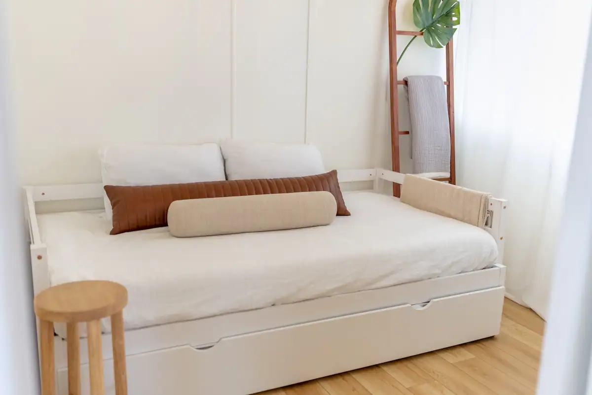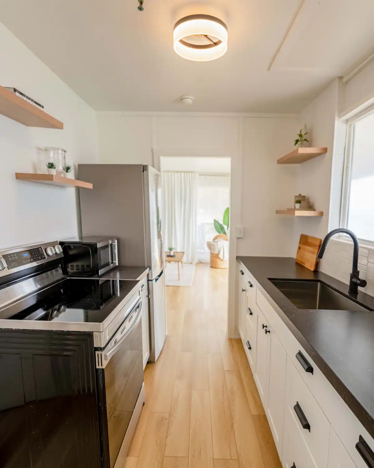 Newly remodeled, the space has an updated living room, kitchen, two private bedrooms, and 1.5 bathrooms. Brand new appliances, flooring, furniture, air mattress for an extra bed, and more.