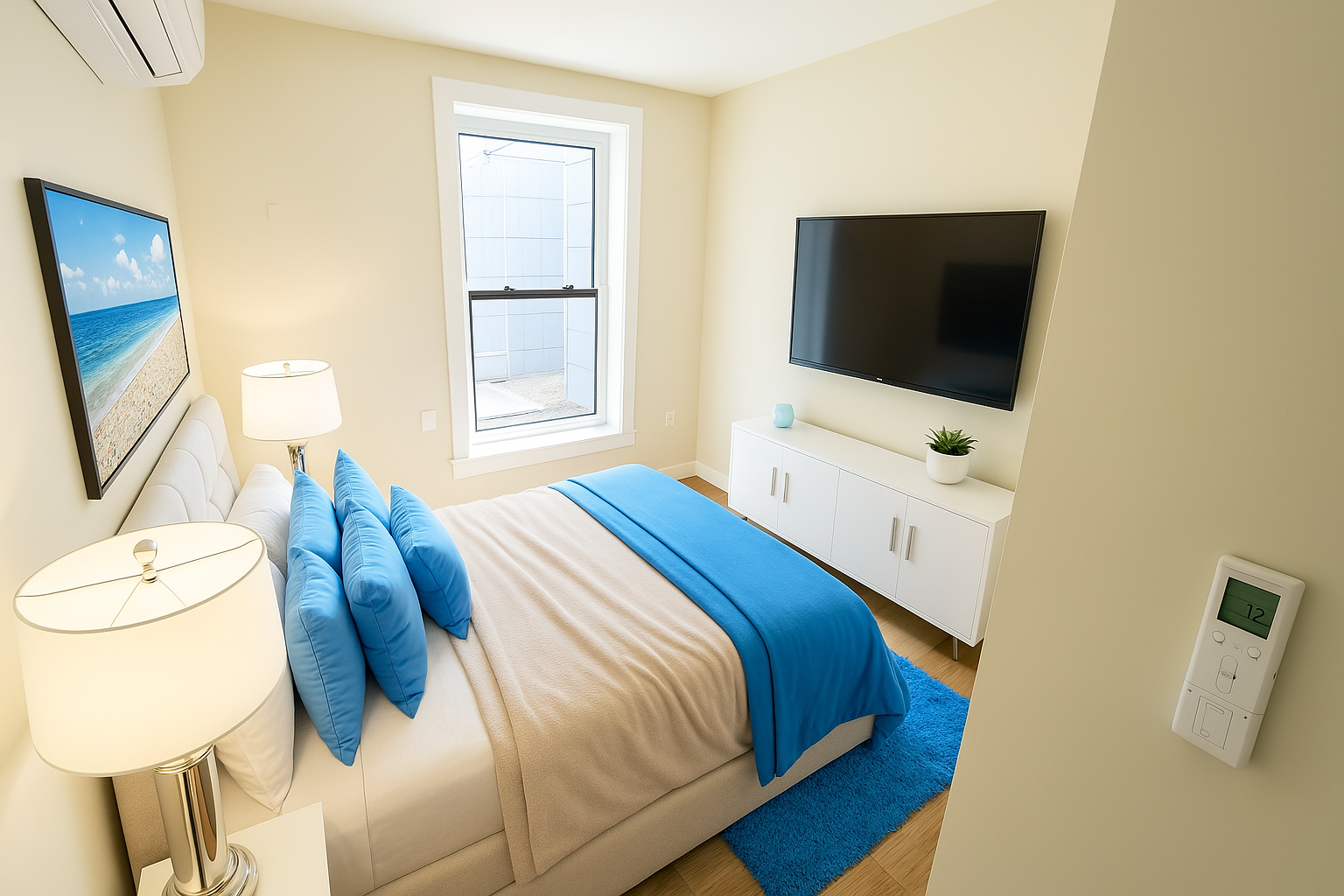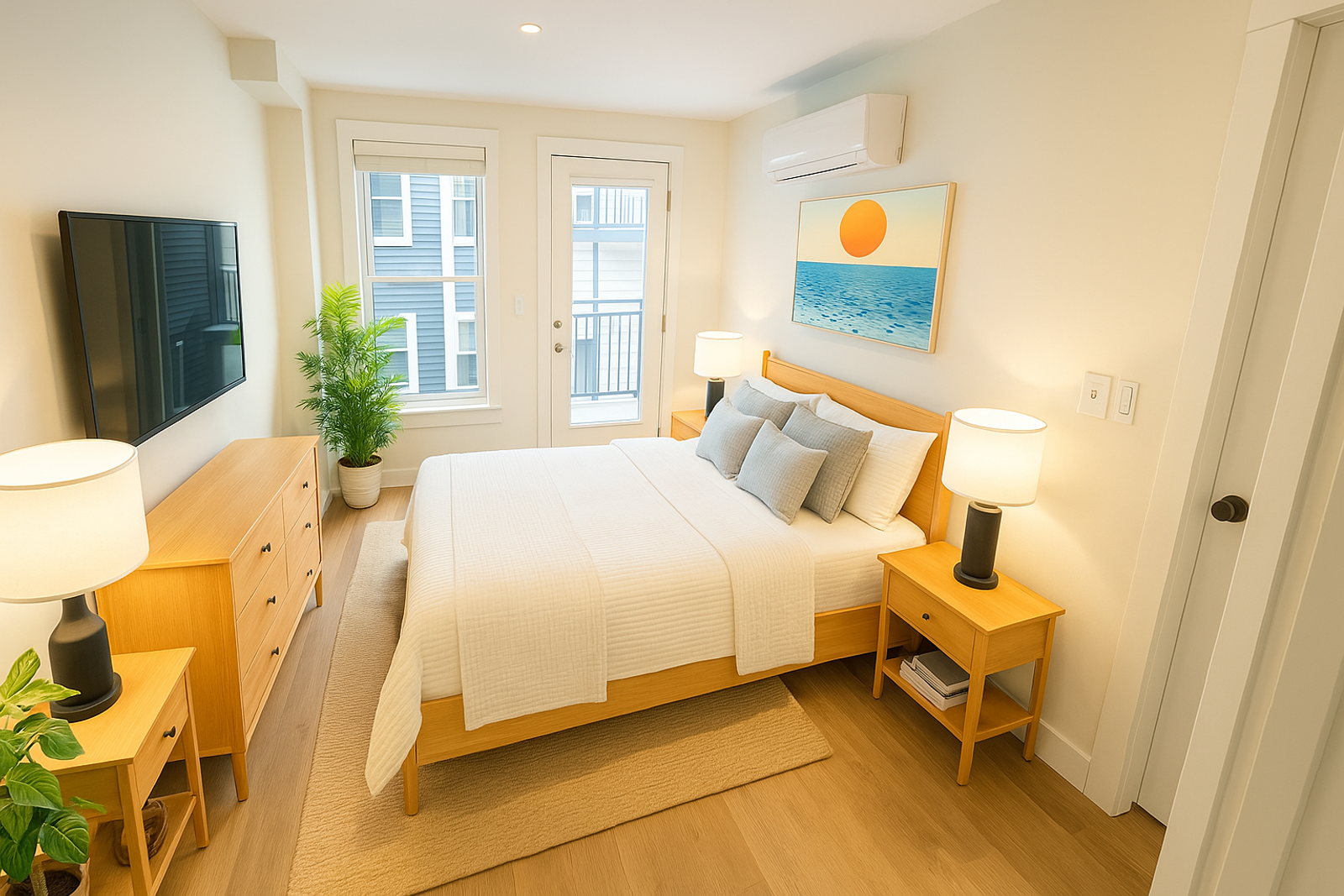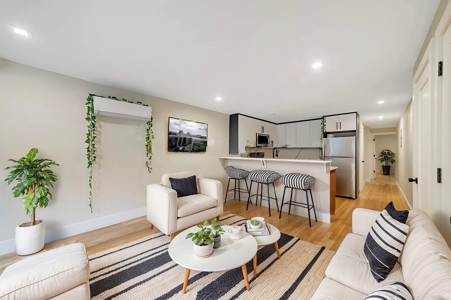 Experience a beautifully sunlit 2-bedroom, 2-bathroom space with an open kitchen that flows into a spacious living room!