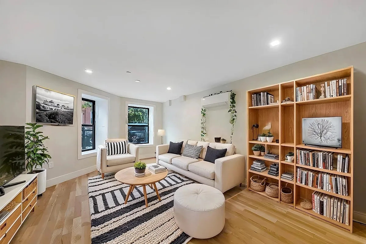Beautiful, recently renovated garden-level brownstone apartment in Bedford-Stuyvesant, Brooklyn! Thoughtfully installed solar panels on the building's rooftop help ensure lower electricity costs for the building's occupants.