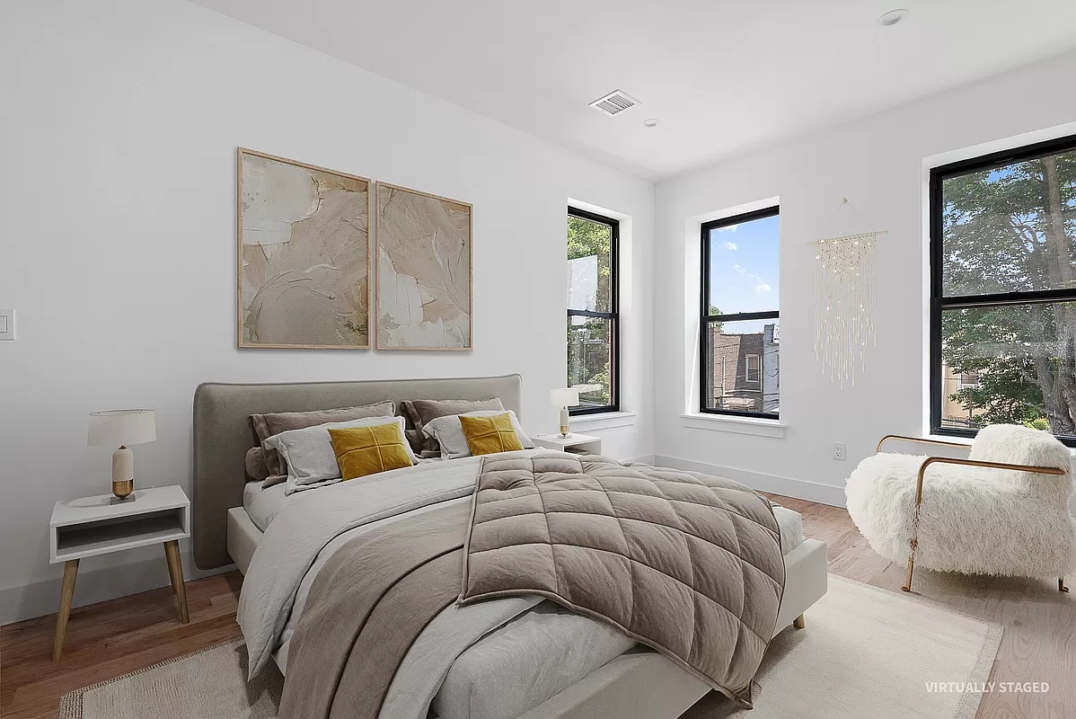 - **Private and Well-Appointed**: Separate entrance through the main vestibule, offering privacy. The top floor unit features three bedrooms, two baths, central kitchen, large open living space, oversized closets, and an in-unit washer/dryer.