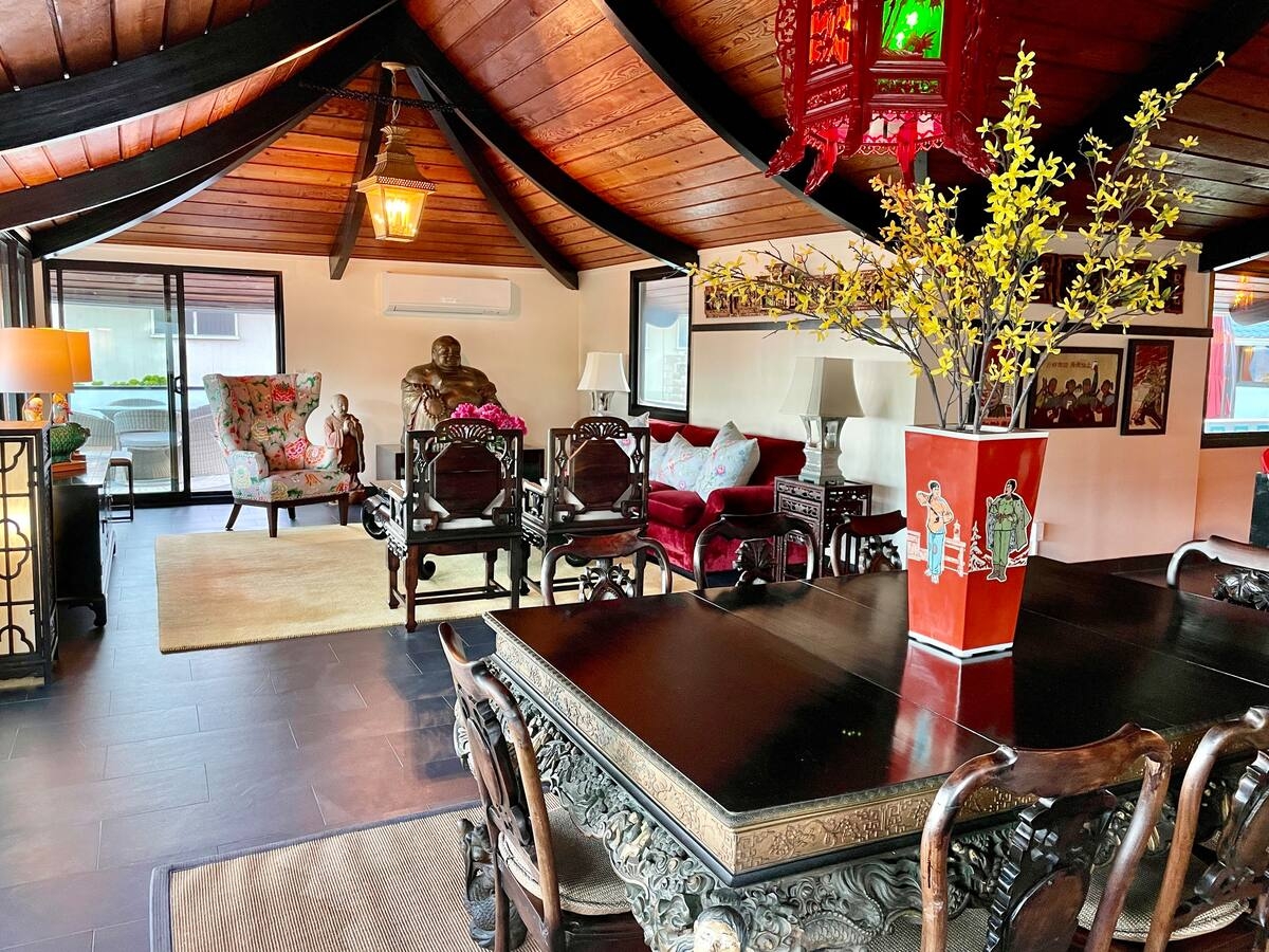Escape to our meticulously crafted Shangri-La villa, where every detail has been thoughtfully designed to create a masterpiece. From the exquisite original wood ceilings to the intricate home decor, this tranquil retreat is a true work of art.