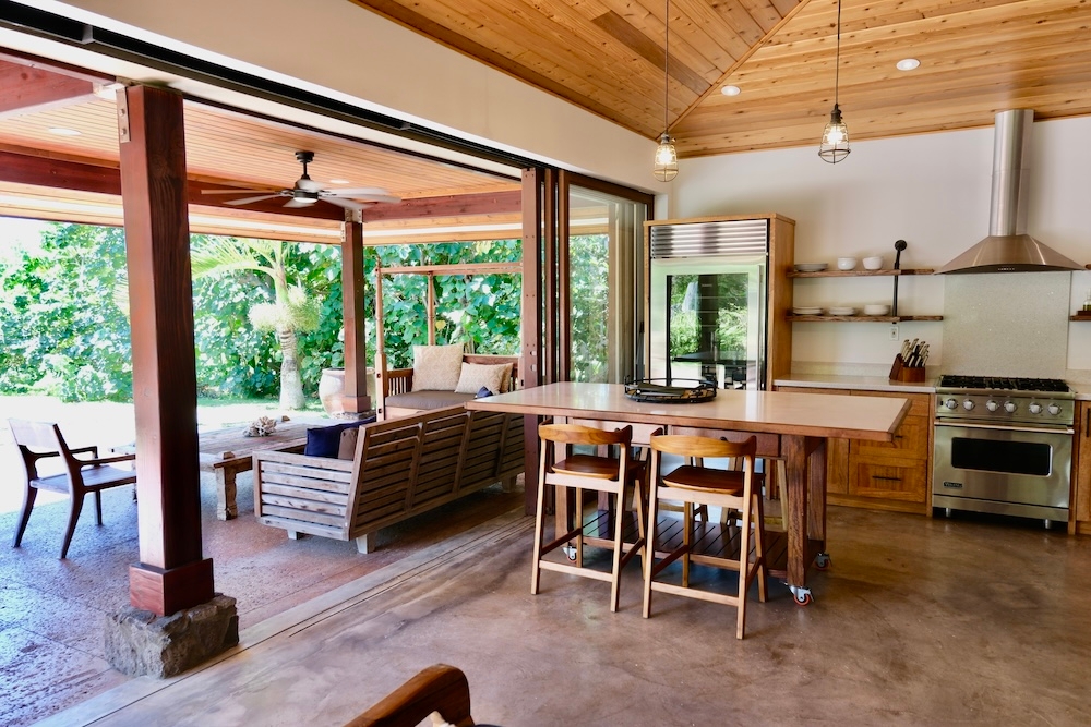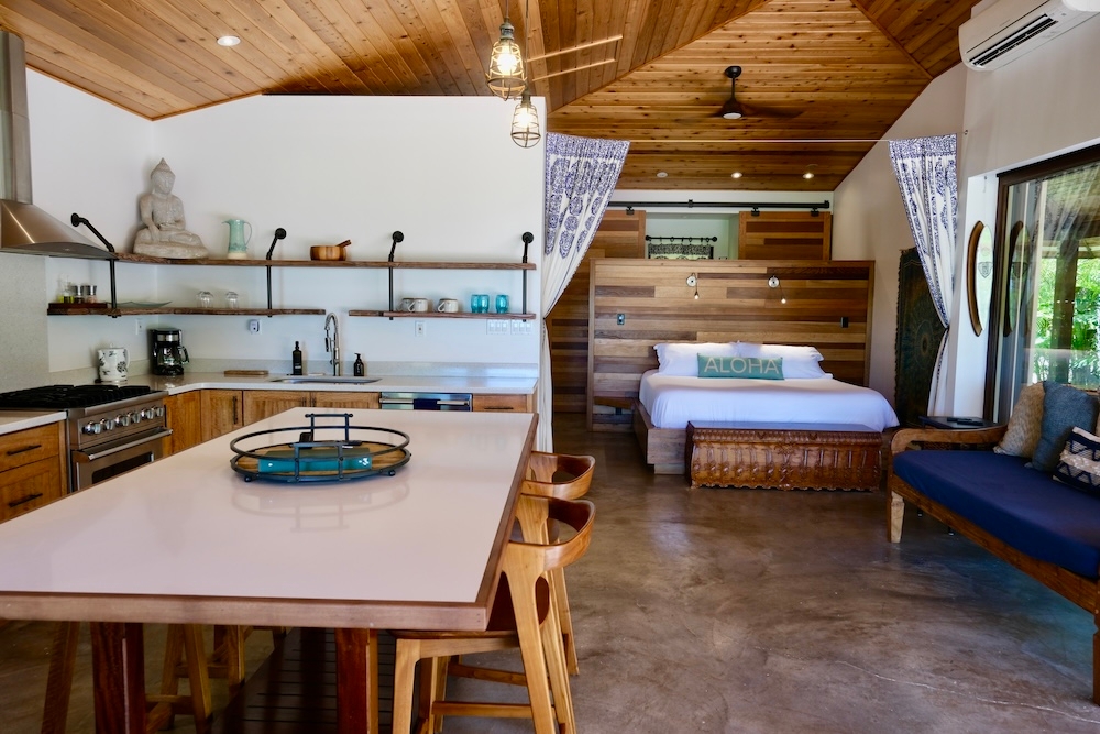 Inside, you’ll find a breathtaking canvas of Garrett McNamara’s legendary Jaws barrel and an original Eddie Aikau trophy a quiet tribute to courage and legacy. The space is thoughtfully designed with earthy island textures, Bali-style daybeds for lounging, and warm wood tones throughout. There’s no TV on purpose. Instead, this retreat invites you to unplug, reconnect, and be present.