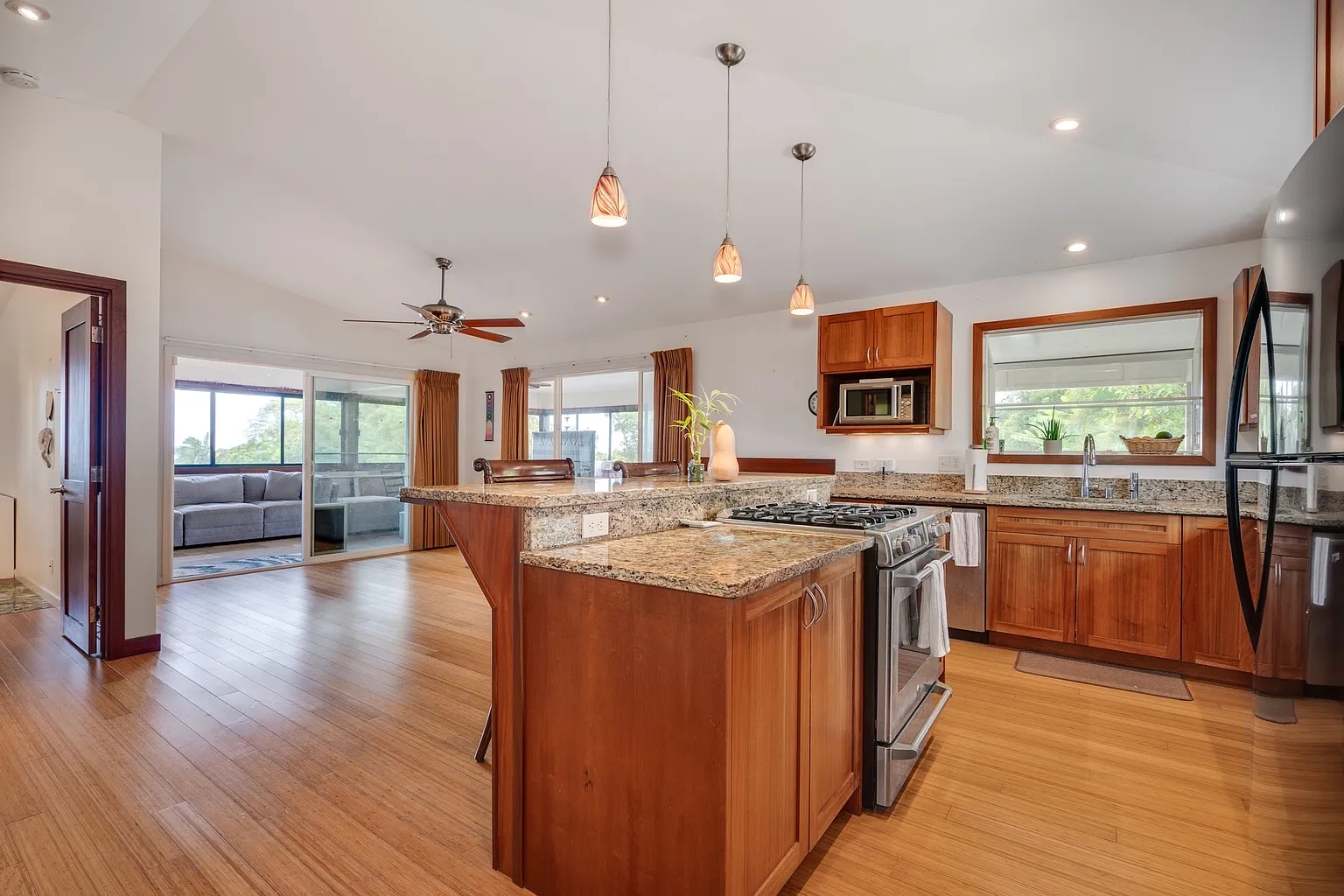 Welcome to Alapio Place! Large home in Pupukea Ocean Views, Pool, and Lush Acreage. Tucked into a quiet cul-de-sac in Pupukea, this stunning home sits on over an acre filled with fruit trees and tropical greenery. An oversized upper-level lanai offers ocean views and cool breezes perfect for morning coffee or watching sunsets. Inside, you'll find a custom mahogany kitchen, a spacious master bedroom and bathroom with a Jacuzzi tub. Outside, enjoy a pool with a large deck, covered parking for two cars, and the peace of North Shore living. -Pets upon approval -1-year lease -First and security -Utilities and Wifi Separate flat $400 Please call or text to setup a viewing today. 12 Month Lease