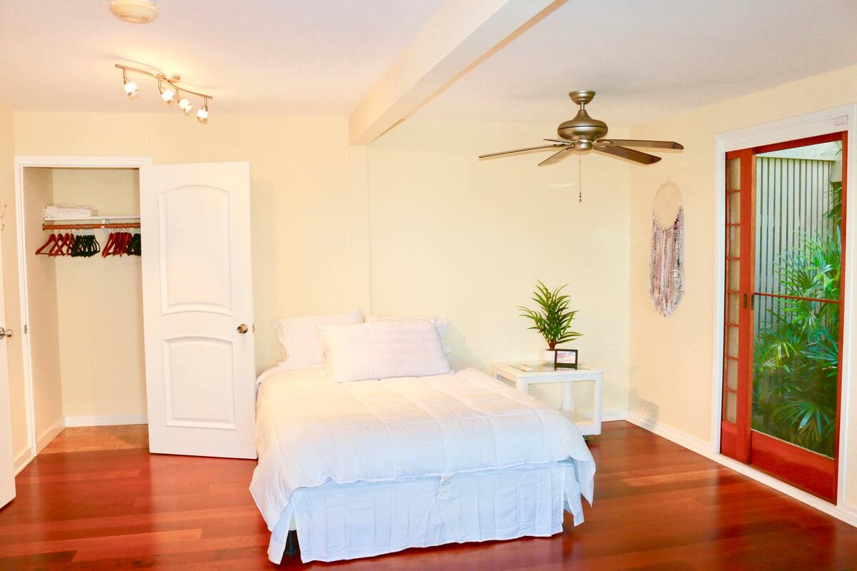 Escape to a tranquil hillside retreat with a private yoga studio and easy access to stunning nearby beaches. Avoid the chaos of the city and immerse yourself in a peaceful neighborhood where you can wake up to the sound of birds and savor your morning coffee with Diamond Head as your stunning backdrop. Just a quick three-minute drive down the hill, you'll find a vibrant community with top-rated restaurants, and Waikiki is just minutes away. *30 day rental*