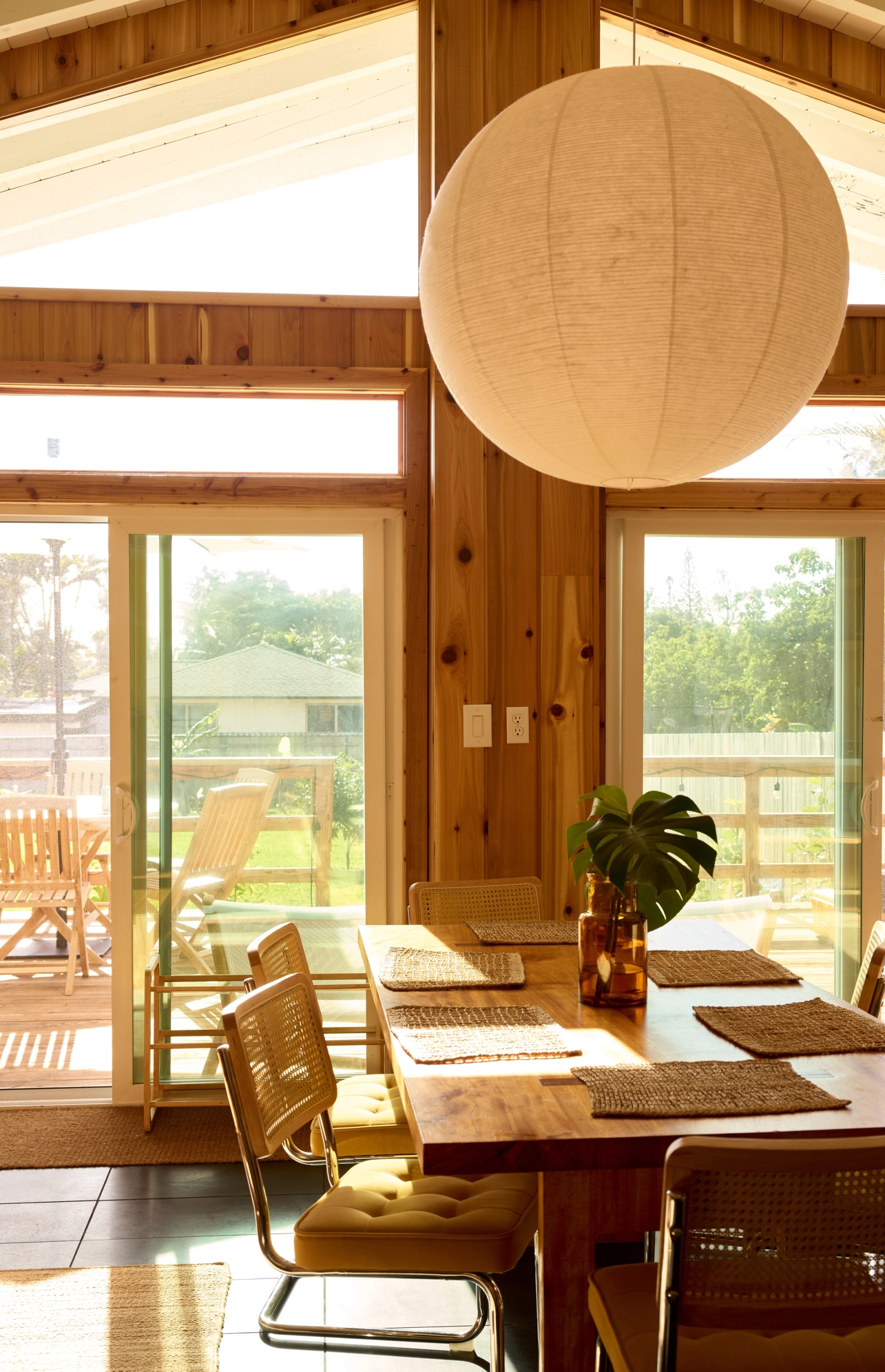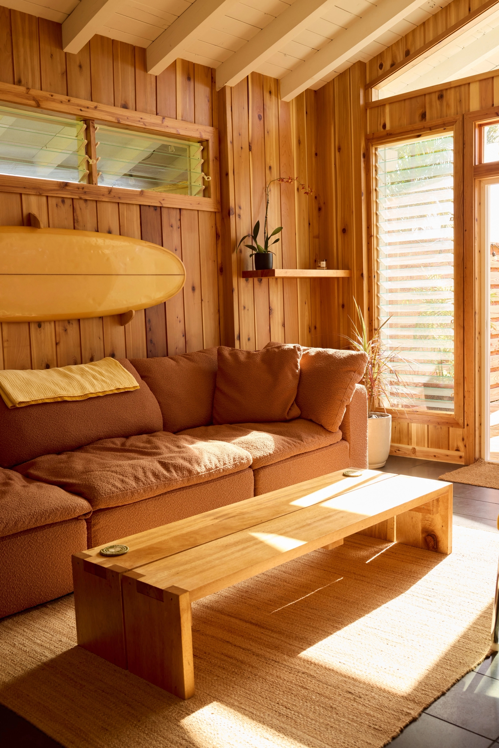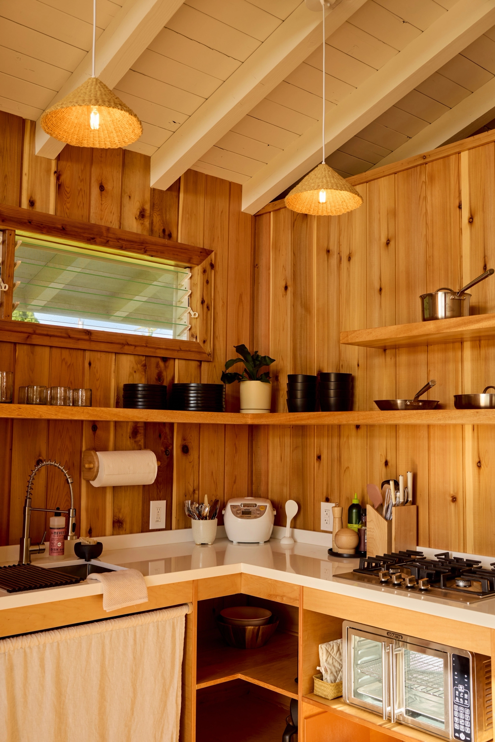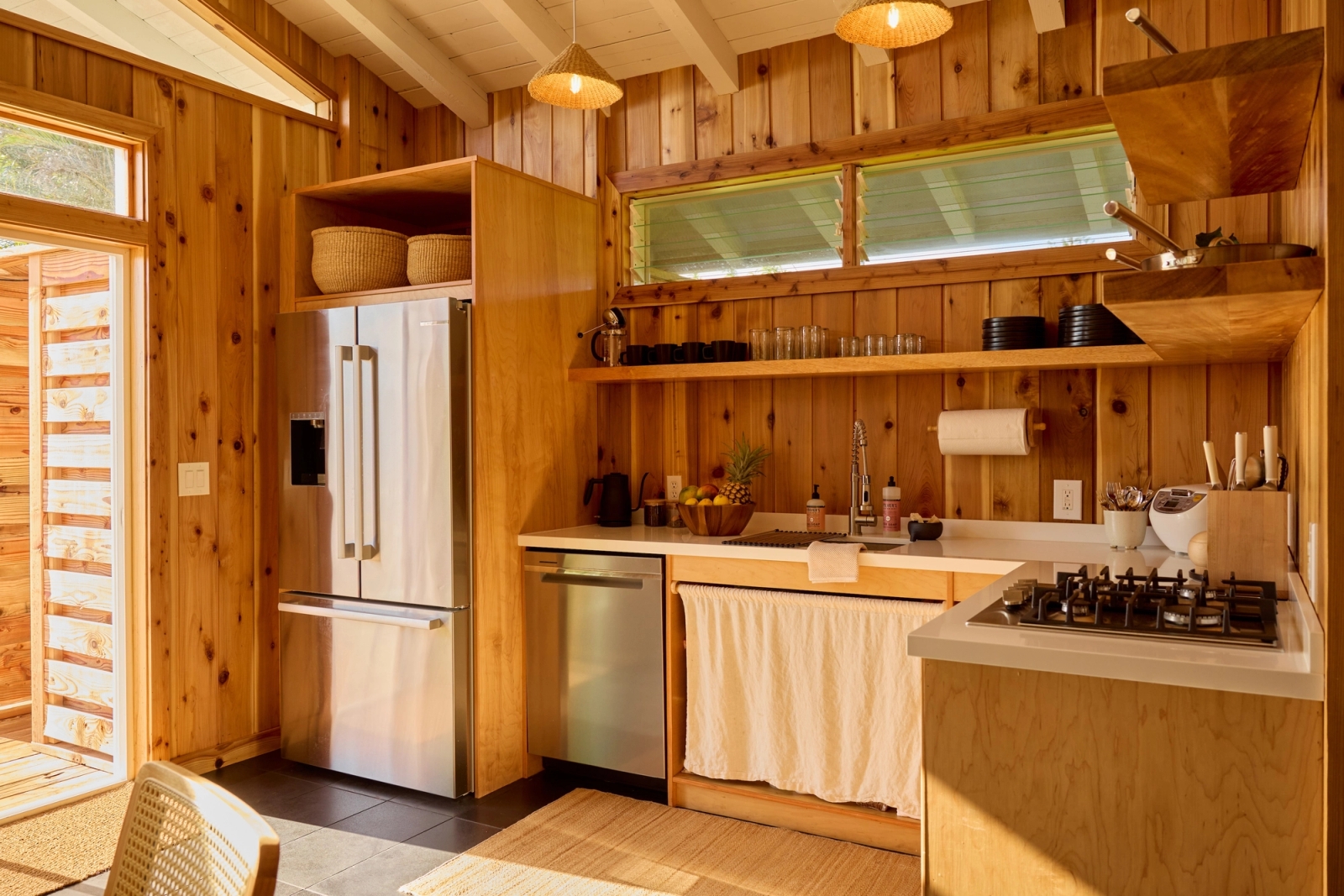 Sleeps 5 guests: 1 king bed and 3 twin size bunk beds. The Cedar House is newly constructed, showcasing craftsmanship with cedar wood paneling, natural stone floors, high ceilings with fans, and custom-built bed frames. Sustainable features include shelves, dining table, and coffee table crafted from locally sourced albizia wood. The kitchen has handcrafted cabinets paired with Bosch appliances, Material Kitchen pans, Tiger rice cooker, Bodum French press, Vitamix, and an air fryer. Bedrooms offer warm lighting, memory foam mattresses with eco-linen bedding, and 55-inch flat-screen TVs. Step outside to an oversized deck with an outdoor shower, laundry room, lounge furniture, and a gas BBQ grill. Beach gear, towels, and surfboards provided. If you seek a curated and meticulously maintained space with all-natural cleaning products, you've found it!