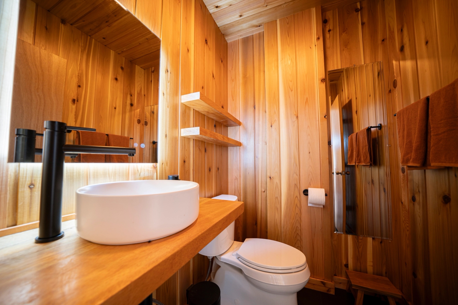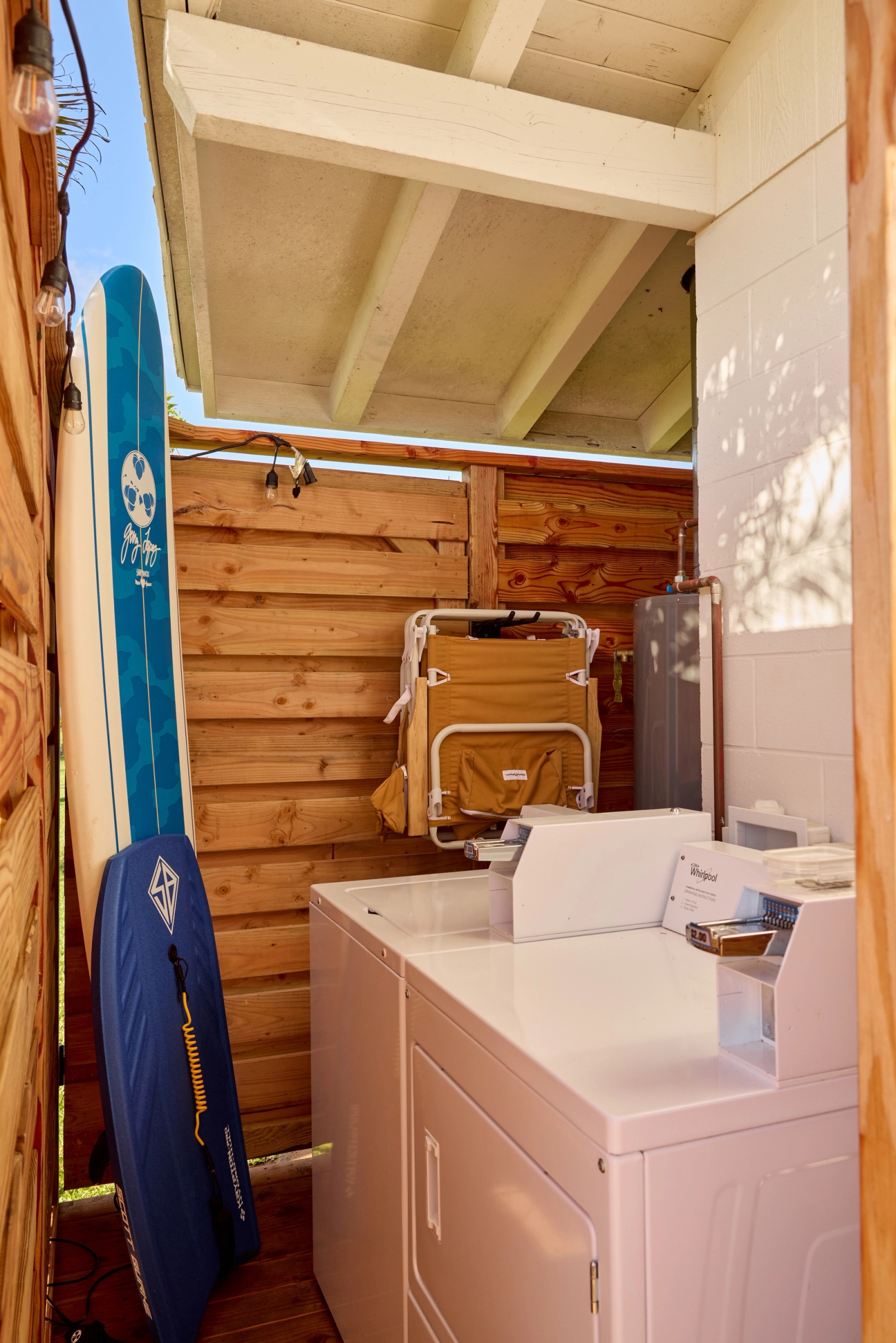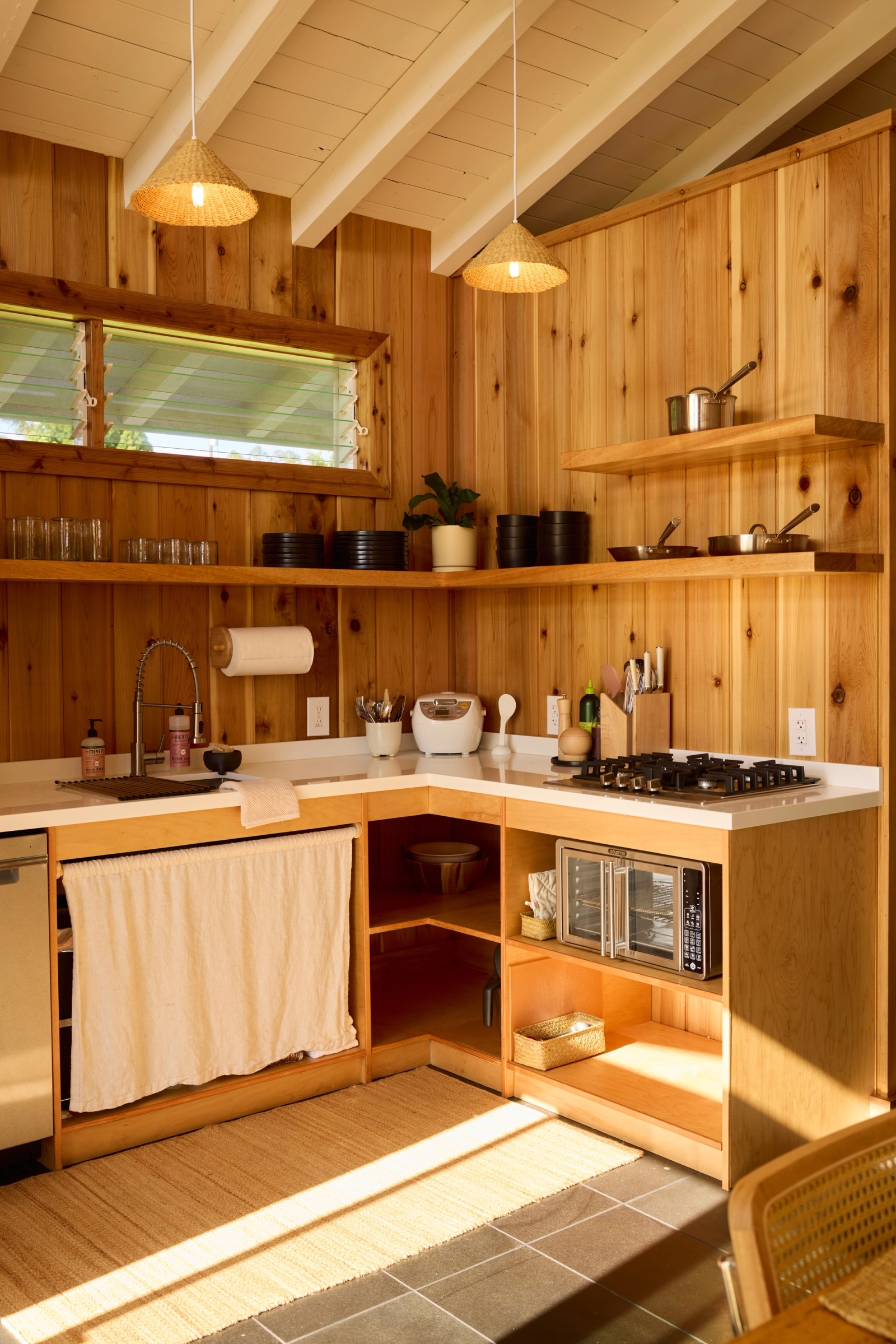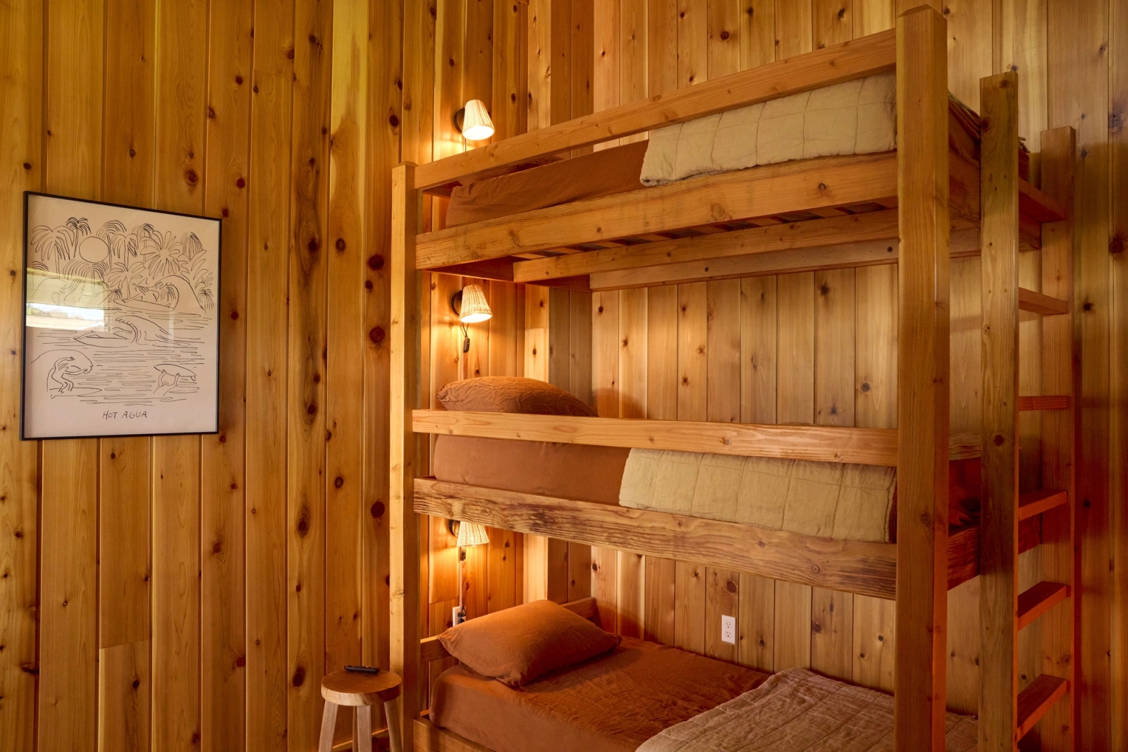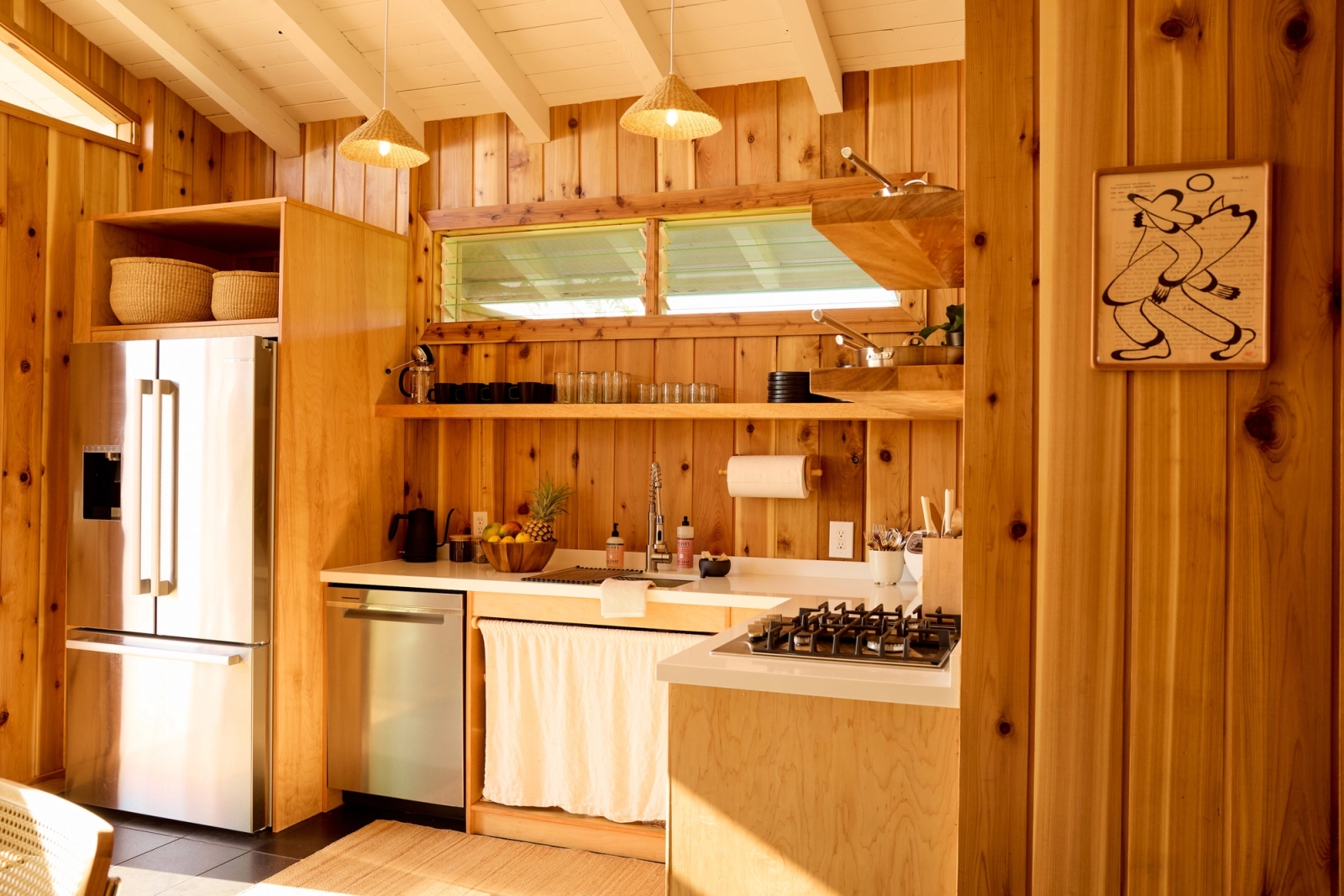 Sleeps 5 guests: 1 king bed and 3 twin size bunk beds. The Cedar House is newly constructed, showcasing craftsmanship with cedar wood paneling, natural stone floors, high ceilings with fans, and custom-built bed frames. Sustainable features include shelves, dining table, and coffee table crafted from locally sourced albizia wood. The kitchen has handcrafted cabinets paired with Bosch appliances, Material Kitchen pans, Tiger rice cooker, Bodum French press, Vitamix, and an air fryer. Bedrooms offer warm lighting, memory foam mattresses with eco-linen bedding, and 55-inch flat-screen TVs. Step outside to an oversized deck with an outdoor shower, laundry room, lounge furniture, and a gas BBQ grill. Beach gear, towels, and surfboards provided. If you seek a curated and meticulously maintained space with all-natural cleaning products, you've found it!