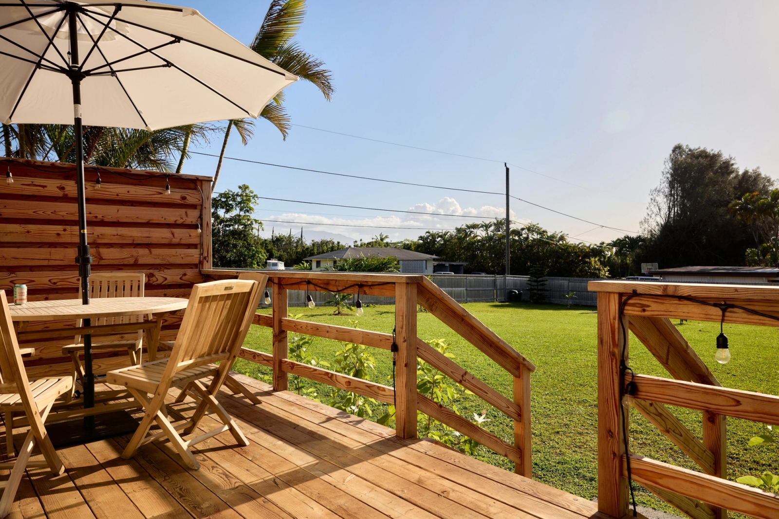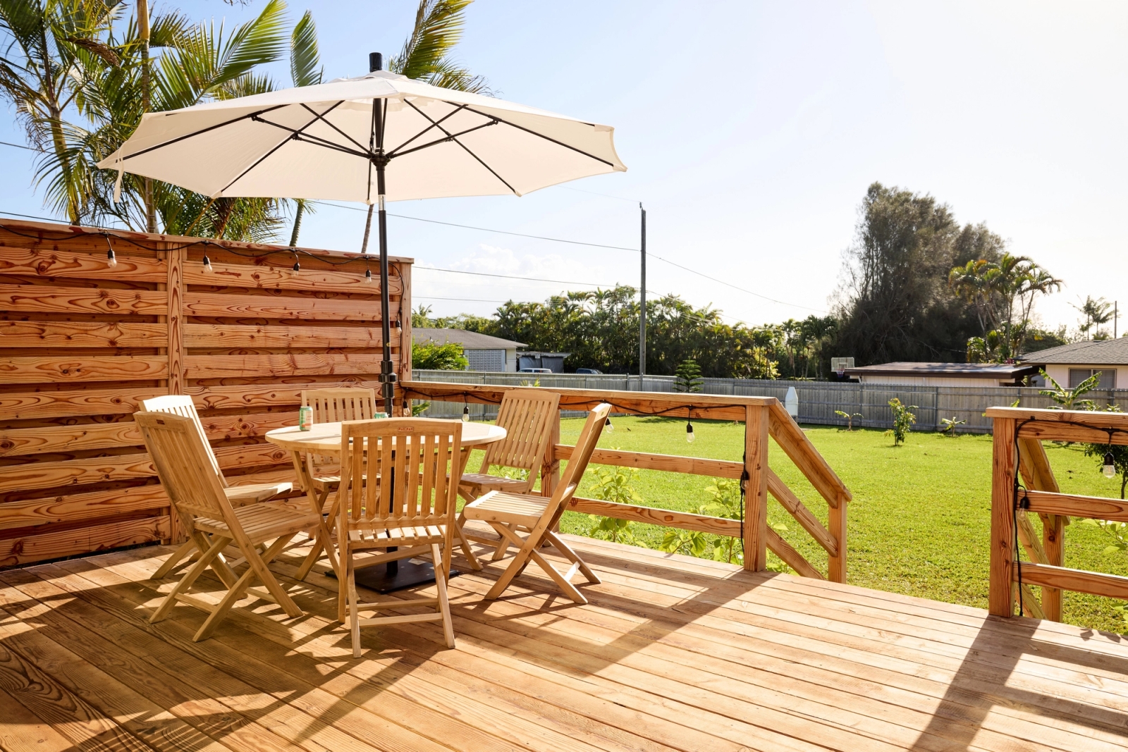 The Cedar House is situated on a shared acre with our family home. Enjoy privacy with a private separate entrance and fenced yard. Outdoor shower has hot water, and laundry is coin operated. Expect to encounter geckos, wild chickens, morning rooster calls, and children playing nearby. Rent a car, moped, or E-bike for the best experience. No parties, smoking, vaping indoors or outdoors.