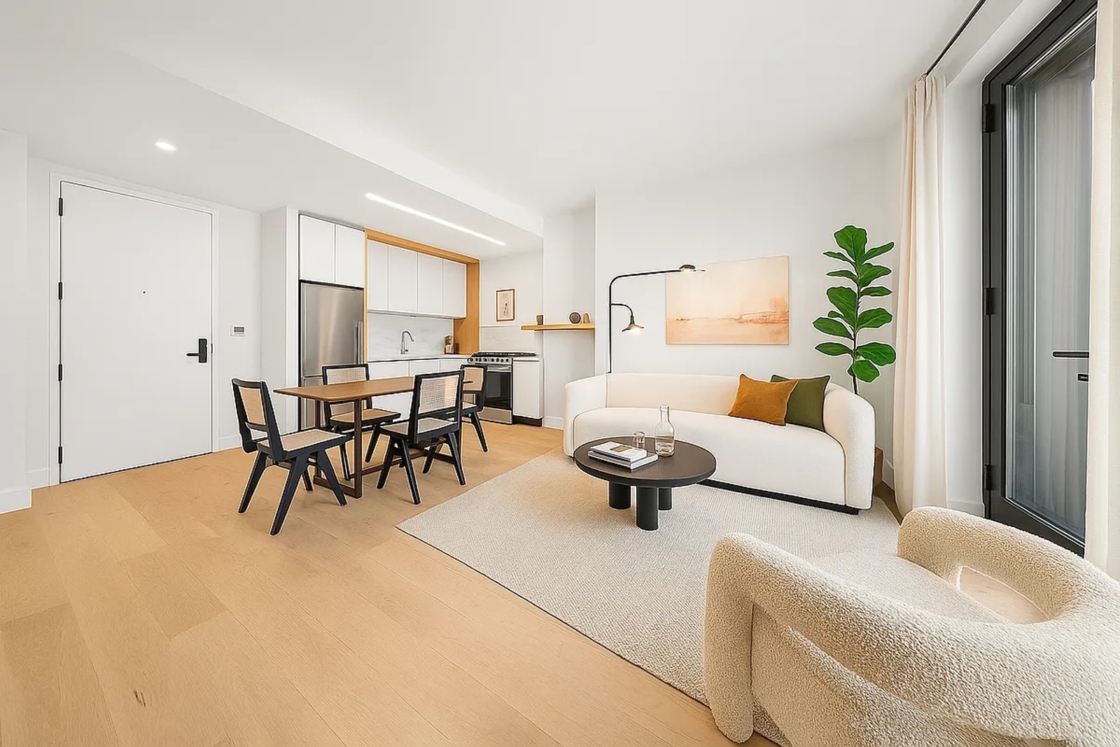 Welcome to Fulton Greene, a brand-new luxury building at the meeting point of Fort Greene, Boerum Hill, and Downtown Brooklyn. This modern one-bedroom home features a rare separate kitchen with stainless-steel appliances, oversized windows that flood the space with natural light, and hardwood floors throughout. Enjoy a quiet, well-designed layout perfect for entertaining or working from home.