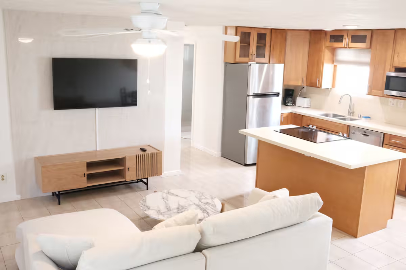 Expect to encounter geckos and wild chickens. Rent a car for the best experience. No parties, smoking, vaping indoors or outdoors. Quiet hours: 9pm-8am. Please review our check-in and check-out times and plan accordingly. Check-in: 3PM and Check-out: 11AM.