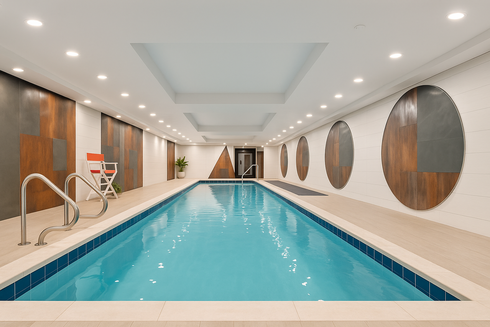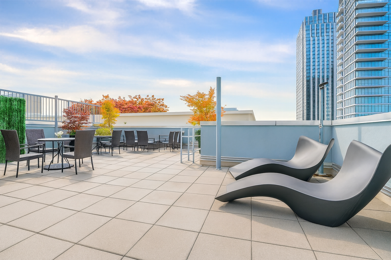 The Wave offers top-tier amenities: year-round heated pool, gym, sauna, yoga and boxing studios, media room, children’s playroom, pet spa, laundry on every floor, and a landscaped sun deck open year-round.